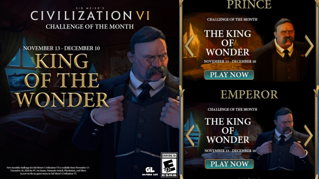 Teodor Ruzvelt bio je jedan od najvećih svjetskih konzervatorista te i u svijetu Civilizacije 6 nije drugačije. U uloziste upravo ovog Američkog lidera i imate zadatak odbraniti Bermudin Trougao (svjetsko čudo) od preostalih 5 civilizacija. Pobjeda je samo jedna – Dominacija. Odbranite svjetsko čudo i pokorite svijet te postanite Kralj čuda!